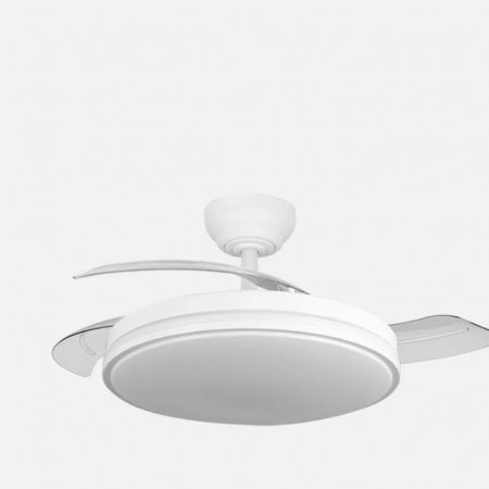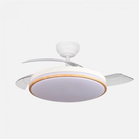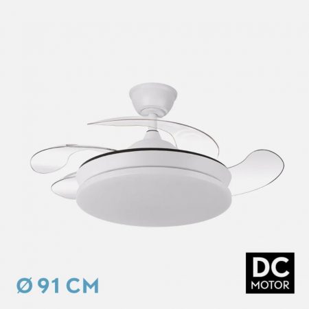 VENTILADOR DC 59W MICENAS BLANCO 4 ASPAS TRANSP. 106D 6 VELOC. 6980LM 3 COLORES C/REMOTO, REG.INTENSIDAD, MEMORIA Y TEMPORIZ.26