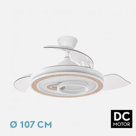 VENTILADOR DC 59W BLANCO 3ASPAS DESPLEGABLES 107D 5960LM 3000-4000-6000K REMOTO+ TEMPORIZADOR+ MEMORIA