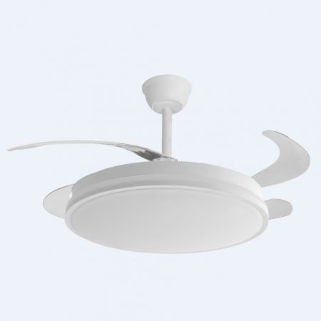 Ventilador DC NEW ASGARD CUERO, 4 aspas retráctiles, 72W LED 3000|4000|6000K, Al.35xD.108/50cm