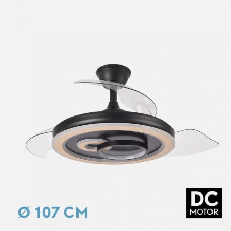 VENTILADOR DC TRIDENTE 59W NEGRO 4ASPAS DESP. 107D 6980LM REG.INTENSIDAD REMOTO+TEMPORIZADOR+MEMORIA 3000-4000-6000K
