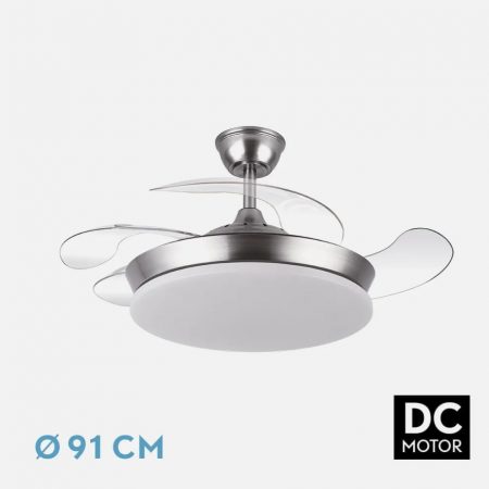 Ventilador DC NEW ASGARD NIQUEL, 4 aspas retráctiles, 72W LED 3000|4000|6000K, Al.35xD.108/50cm