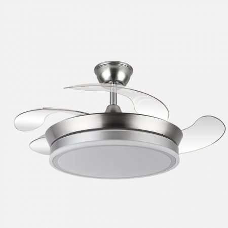 VENTILADOR DC BAYOMO NIQUEL 59W 6980LM 91D 4ASP.DESPLEGABLES 3000-4000-6000K REMOTO, REGULABLE INTENSIDAD, TEMPORIZADOR, MEMORIA
