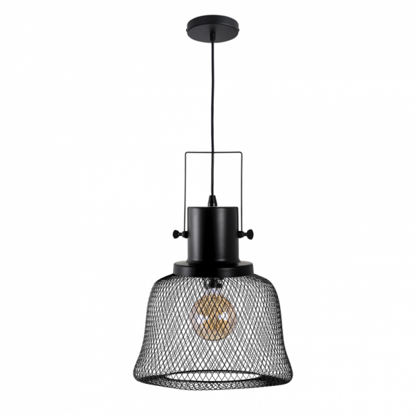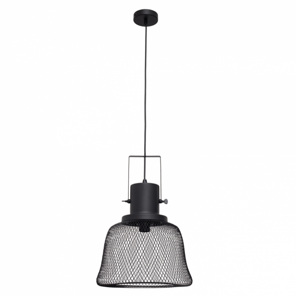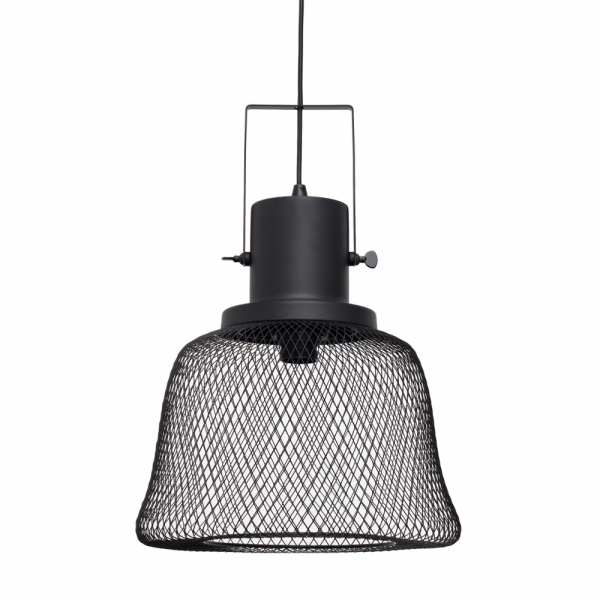 Está inspirado en el diseño industrial y está realizada con una rejilla metálica que permite traspasar la luz, creando así un juego lumínico.