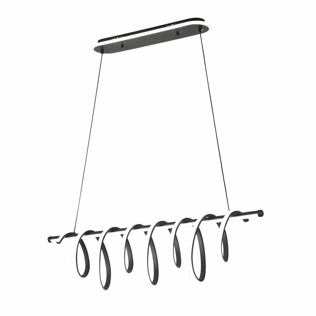 Colgante de la serie PREMIUM de color NEGRO. Este moderno colgante LED está realizado en metal y acrílico. Posee tecnología LED INTEGRADO con 157 vatios de potencia en su luz principal, 13884 lúmenes y con 3 TEMPERATURAS SELECCIONABLES DE LUZ (3000k, 4000k y 6000k) luz cálida, natural y blanco frío, también equipado con una LUZ AMBIENTE o LUZ DE NOCHE de 8,9 vatios en la estructura que va pegada al techo, pudiendo dejar solo esta luz encendida, creando un ambiente acogedor. Viene con MANDO A DISTANCIA incluido y REGULADOR DE INTENSIDAD. Se caracteriza por su diseño con formas curvas y enrolladas sobre su propia estructura con aspecto brillante, resultando un juego lumínico muy original suspendido por cables. Sus dimensiones, regulables en altura son de 55<119,5x90x26 centímetros. Disponible en esta serie en color blanco y en negro para elegir el que mejor se adapte a su decoración.