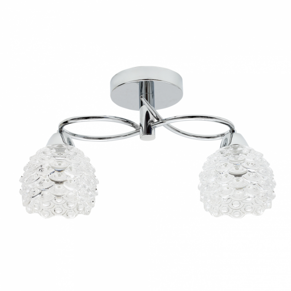 Realizado en metal de color cromo y cristal.