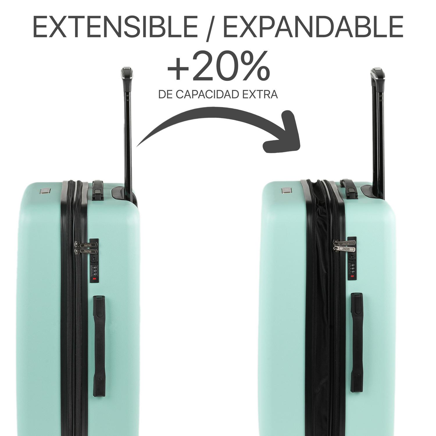 Cuentan con doble rueda giratoria, candado TSA y los 2 tamaños son expandibles con doble cremallera.