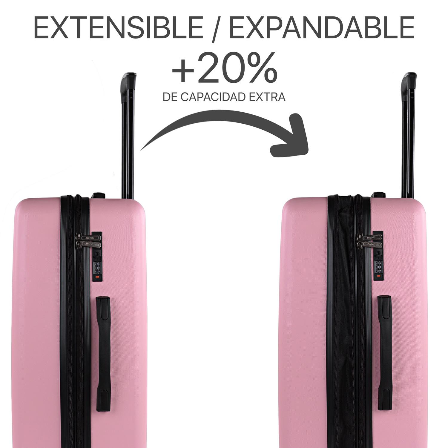Cuentan con doble rueda giratoria, candado TSA y los 2 tamaños son expandibles con doble cremallera.