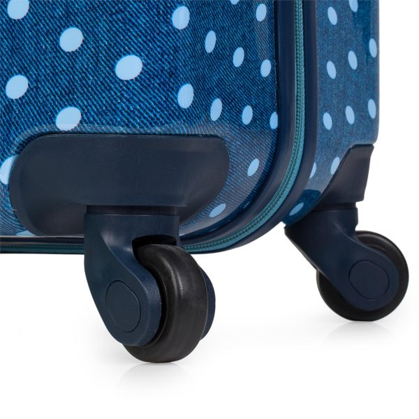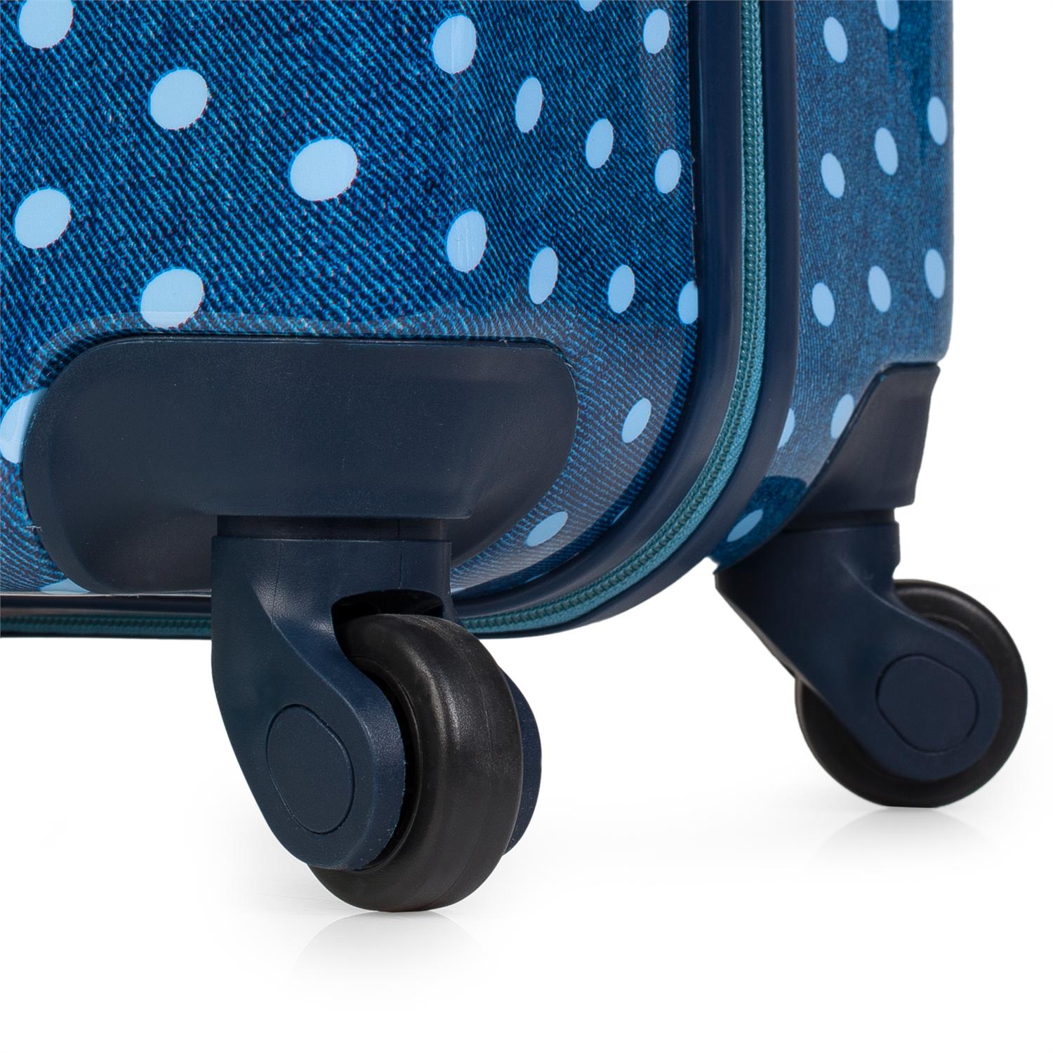 Con 4 ruedas giratorias y mango telescópico y forro interior.