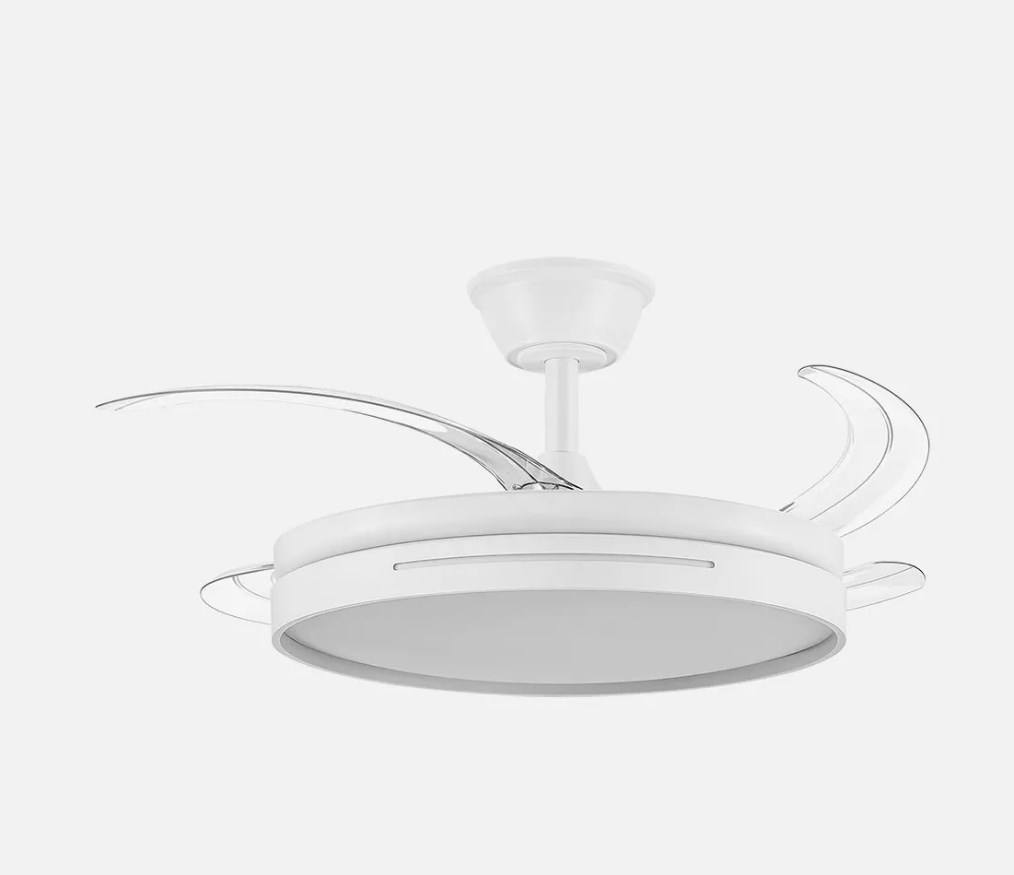 VENTILADOR DC 59W MICENAS BLANCO 4 ASPAS TRANSP. 106D 6 VELOC. 6980LM 3 COLORES C/REMOTO, REG.INTENSIDAD, MEMORIA Y TEMPORIZ.26