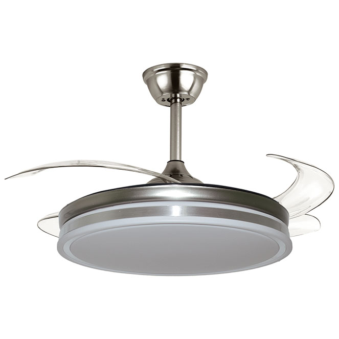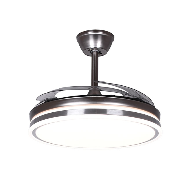 Ventilador DC NEW ASGARD NIQUEL, 4 aspas retráctiles, 72W LED 3000|4000|6000K, Al.35xD.108/50cm