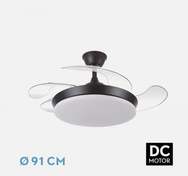 VENTILADOR DC TRIDENTE MINI 59W NEGRO 4ASPAS DESP.91D 6980LM REG.INTENSIDAD REMOTO+TEMPORIZADOR+MEMORIA 3000-4000-6000K