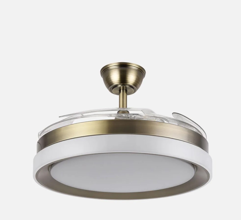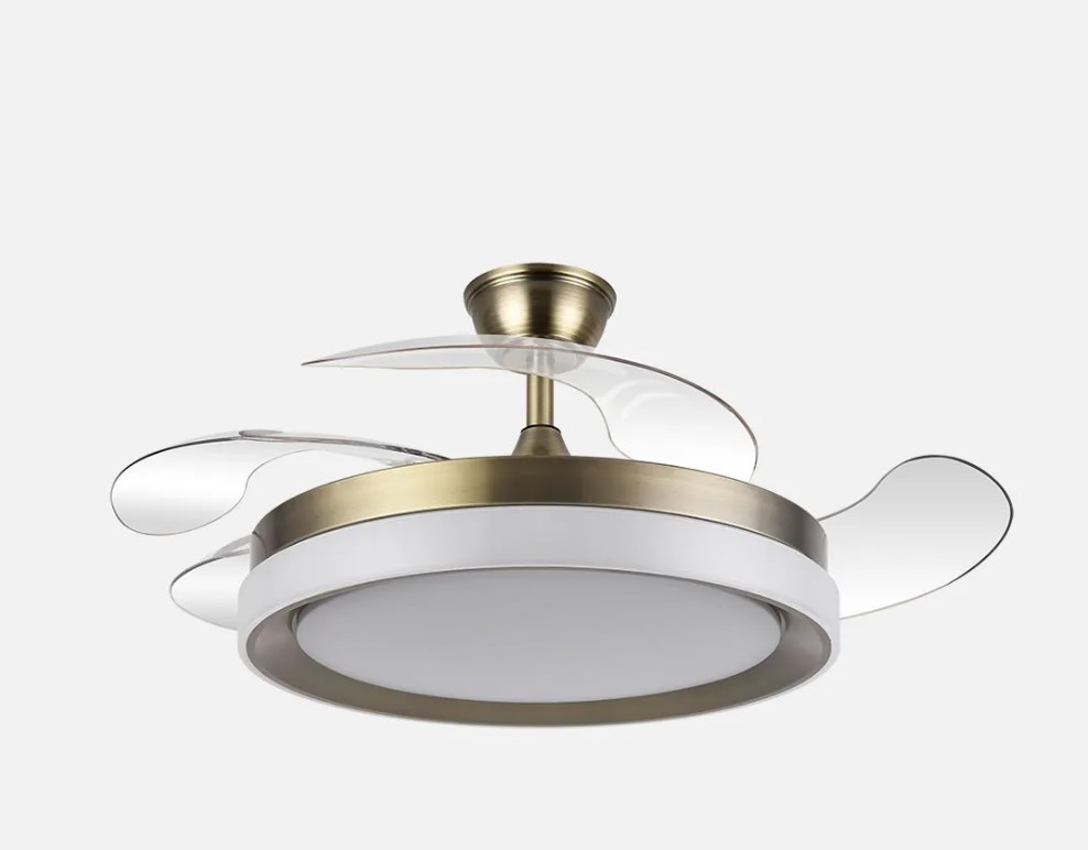 Ventilador DC de la serie ZENIT en color CUERO con cuatro aspas DESPLEGABLES muy resistentes. Realizado en metal, ABS y policarbonato, de diseño moderno, muy original y elegante. Tiene seis velocidades ajustables. Motor DC. Tecnología LED integrada con una potencia de 59W, 69800 lúmenes y 3 TEMPERATURAS SELECCIONABLES DE LUZ (3000-4000-6000K), luz cálida, luz natural y blanco frío. Control de aire verano o invierno. Su medida es de 34,5/42X50 centímetros con las aspas plegadas y de 34,5/42X107 centímetros con las aspas desplegadas, viene con DOS MEDIDAS DE TIJA para colocar a distintas alturas de techo. Mando a distancia INCLUIDO, REGULABLE EN INTENSIDAD, con MEMORIA DE COLOR y TEMPORIZADOR 2/4 H. Modelo disponible en color cuero, blanco y níquel.